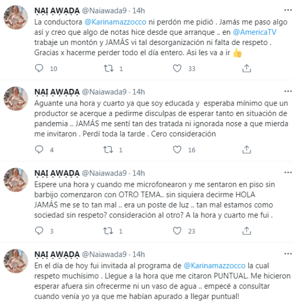 Lo cierto es que antes de ingresar al piso, según contó la propia Nai, la tuvieron una hora afuera del estudio "sin ofrecerle ni un vaso de agua".