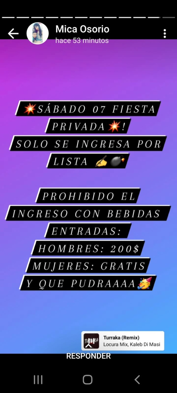Asimismo, informó que estaba prohibido el ingreso con bebidas y que la entrada valía 200 pesos para hombres y era gratis para las mujeres, como si de un boliche se tratara. "Y que se pudra", finalizó.