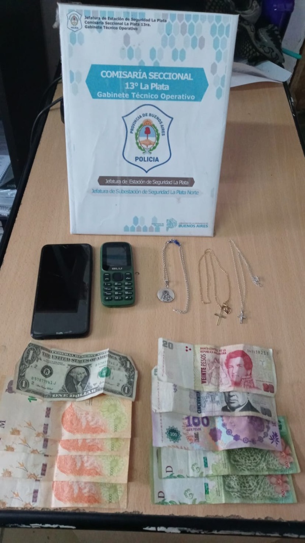 En el interior del Peugeot los oficiales encontraron dos celulares,varias cadenas de oro y crucifijos, ariculares, barretas y pinzas, guantes, varias tarjetas SIM, prendas de vestir y más de 5 mil pesos en efectivo.