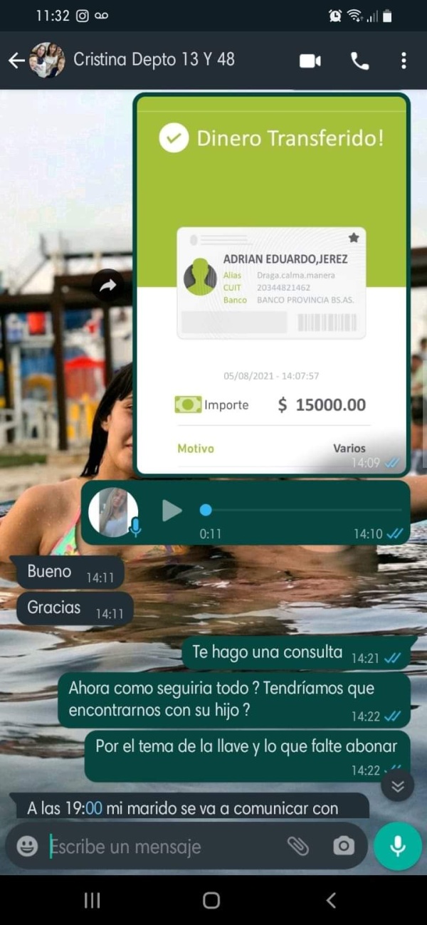 Por su parte, el supuesto hijo de la persona que alquila el departamento, según pudo averiguar LAPLATA1.com, se llama Adrian Eduardo jerez, al cual le entregó $15.000 como deposito.