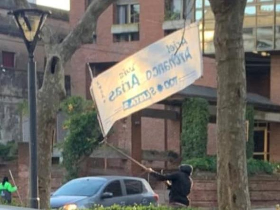 Tal como se aprecia en la foto, integrantes (cooperativistas) de la actual gestión vandalizaron de manera violenta los pasacalles que la oposición desplegó por diferentes puntos de la ciudad.