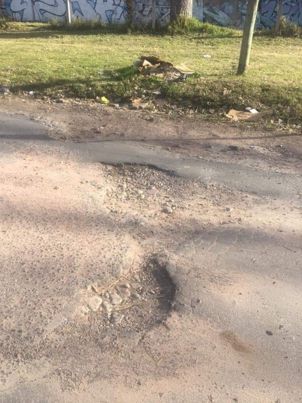 En las imágenes difundidas por Facebook se pueden observar una gran cantidad de baches que se expanden por toda la cinta asfáltica. Ya solicitaron el arreglo a través del 147, pero hasta el momento no fue solucionado.