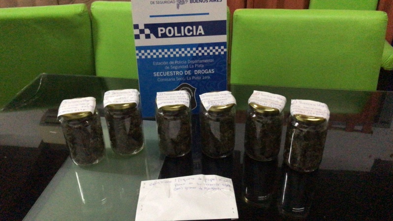 Luego de quitarle los seis frascos que tenía en su poder para comercializar, le realizaron un test para verificar lo que había en su interior, y una vez que confirmaron que tenía drogas, lo demoraron.
