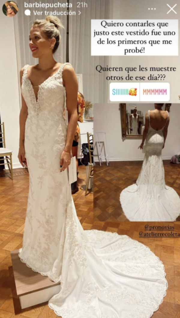 "Quiero contarles que justo este fue uno de los primeros vestidos que me probé. ¿Quieren que les muestre otros de ese día?", expresó la actriz sin aclarar si finalmente esa fue la prenda que eligió para caminar hacia el altar.