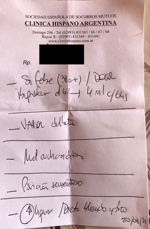 La periodista de LAPATA1.com que hizo la primera denuncia, habló con LU24, la radio más escuchada de Tres Arroyos y explicó cómo sucedió todo: "Mi nena tenía tos, la llevé a la guardia de la Clínica Hispano, la médica la atendió en el consultorio de la guardia y al final de la atención me dijo que me tenía que cobrar un adicional de 750 pesos".