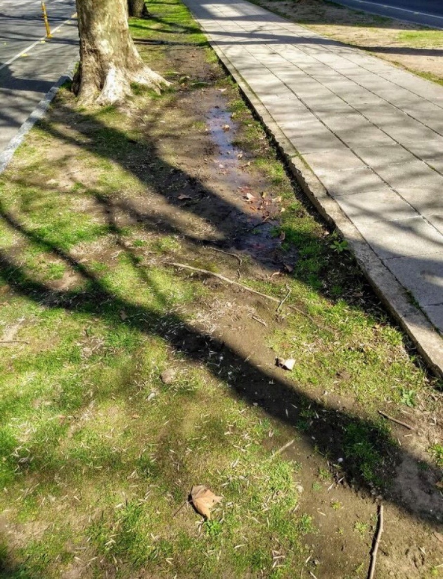 Además de generar un barrial, dificulta el paso de peatones ya que no se ven las baldosas rotas y generan “caos al pasar”. Tras varios reclamos aún esperan respuestas.