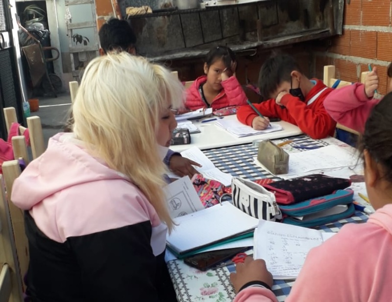 Ella vive en 165 y 527, en Melchor Romero. Pero no solo brinda estas clases de apoyo, sino que también tiene un comedor llamado “Libertad y Esperanza”.
