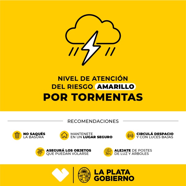 También se recomienda estar atentos a los canales oficiales de información: las cuentas de Facebook y Twitter de la Municipalidad de La Plata; la web oficial de la comuna laplata.gob.ar; ‘Defensa Civil MLP’ en Twitter y Facebook; y ‘Clima MLP’ en Twitter. Del mismo modo, se recuerda que en casos de emergencias los vecinos podrán comunicarse al 103 de Protección Civil y al 911 de la Policía; mientras que, para realizar reclamos o pedidos, podrán hacerlo a la línea de atención del 147.