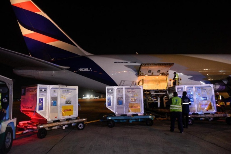 Las vacunas arribaron en un vuelo de la compañía canadiense Air Canada, bajo el número AC7251, que tocó pista en el aeropuerto Internacional de Ezeiza a las 19.51 con 1.654.500 dosis en sus bodegas.