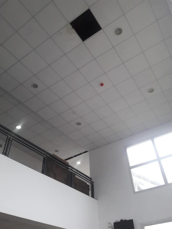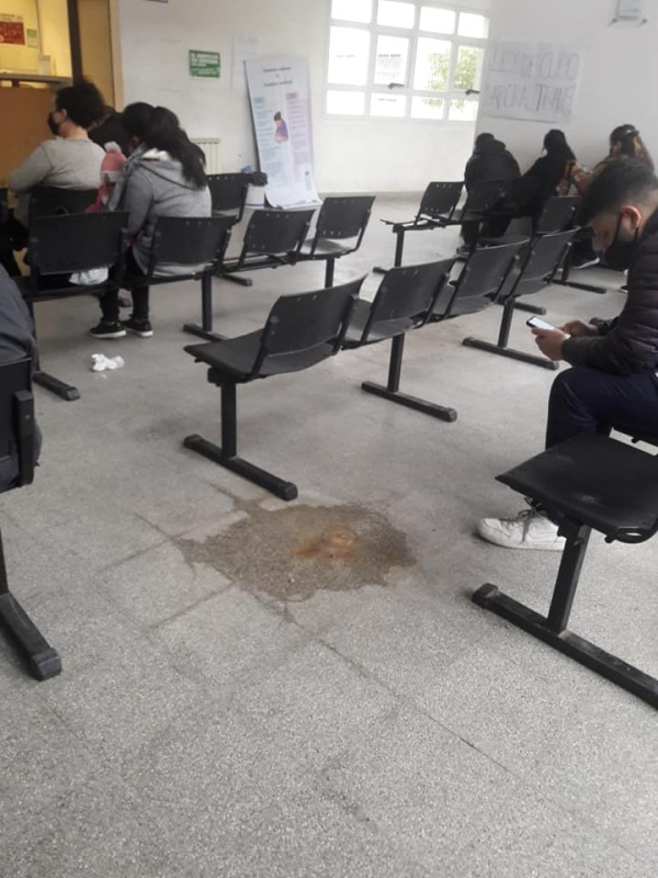 Según mostró Roxana, en el edificio nuevo del nosocomio, parte del cielorraso se vino abajo, en plena sala de espera.