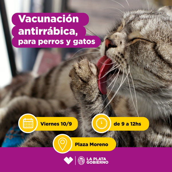 En el marco de las acciones tendientes a proteger a los animales y concientizar acerca de la tenencia responsable de mascotas, mañana la Municipalidad de La Plata llevará a cabo una nueva jornada de vacunación antirrábica gratuita para perros y gatos en la Plaza Moreno.