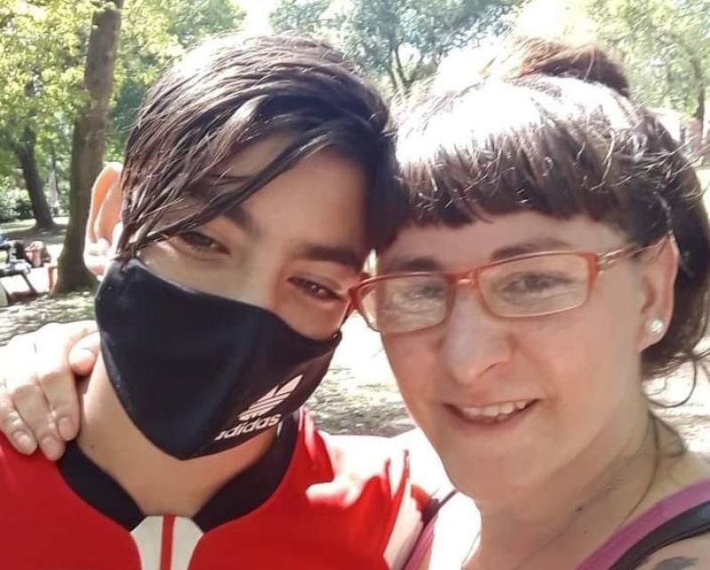 “En noviembre del año pasado salimos a La Salada y nos fue muy bien. A partir de ahí nunca dejamos de viajar ya que ambos tenemos familia y queríamos llevar el pan de cada día a nuestros hogares”, señala Aldana. Una luchadora platense junto a su hijo Tobías.