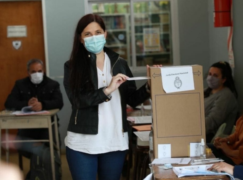 Luana Simioni, precandidata a concejal por la Lista 1A del Frente de Izquierda Unidad, votó esta mañana en el Colegio Cristo Rey de su barrio, La Loma.