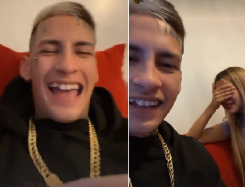 "No me hagas reír", le dijo ella cuando se percató de la filmación. "Llora porque la hago reír", dijo L-Gante y agregó "eso es ser bueno".