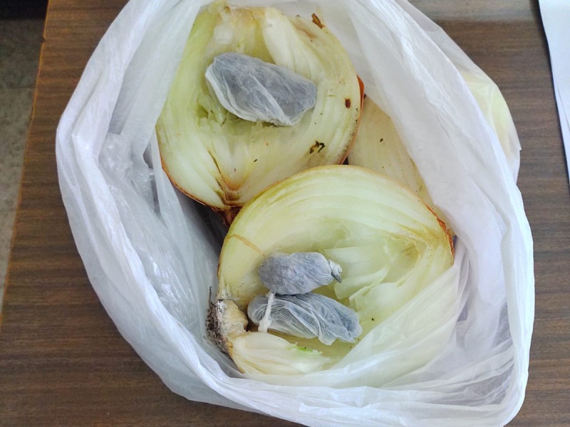 Dentro de una bolsa con distintos elementos para el presidiario, los efectivos policiales le encontraron dos cebollas que decidieron abrir por la mitad. Efectivamente, dentro de la verdura tenía seis envoltorios de marihuana.