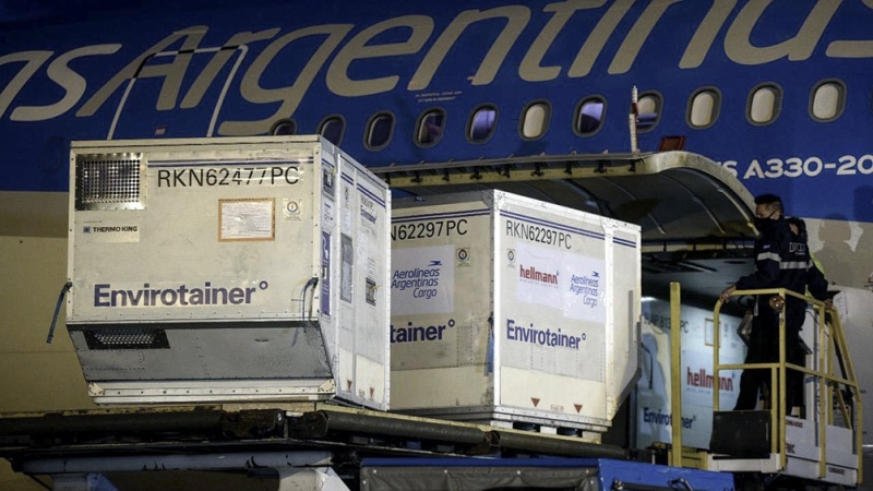 Más de 1,3 millones de vacunas Sinopharm arribaron este lunes al país para sumarse al Plan Estratégico de Vacunación contra la Covid-19 que lleva adelante el Gobierno nacional, y llevaron a 63 millones el total de dosis recibidas desde el inicio de la pandemia, se informó oficialmente.