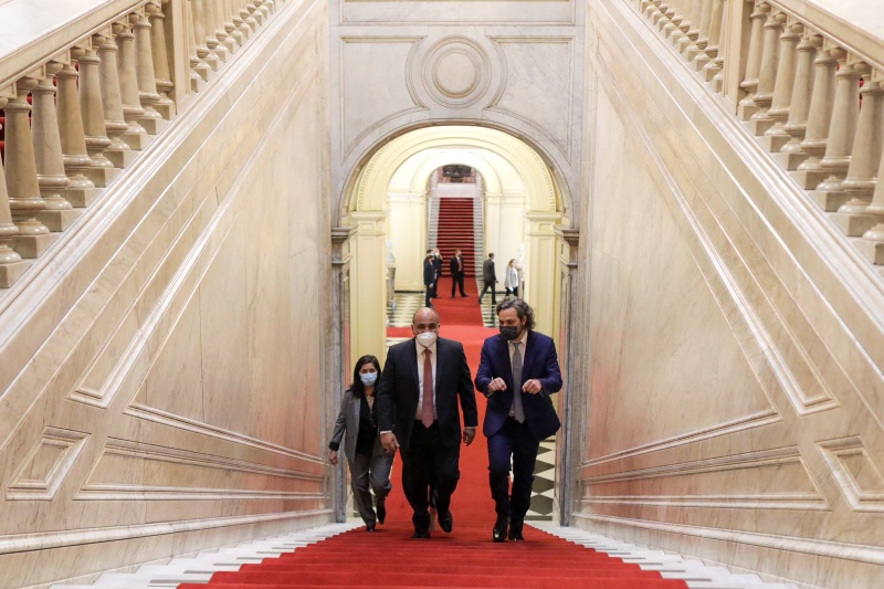 El presidente Alberto Fernández se reunió hoy con Santiago Cafiero para delinear los últimos trazos del mensaje que brindará mañana ante la Asamblea General de Naciones Unidas.