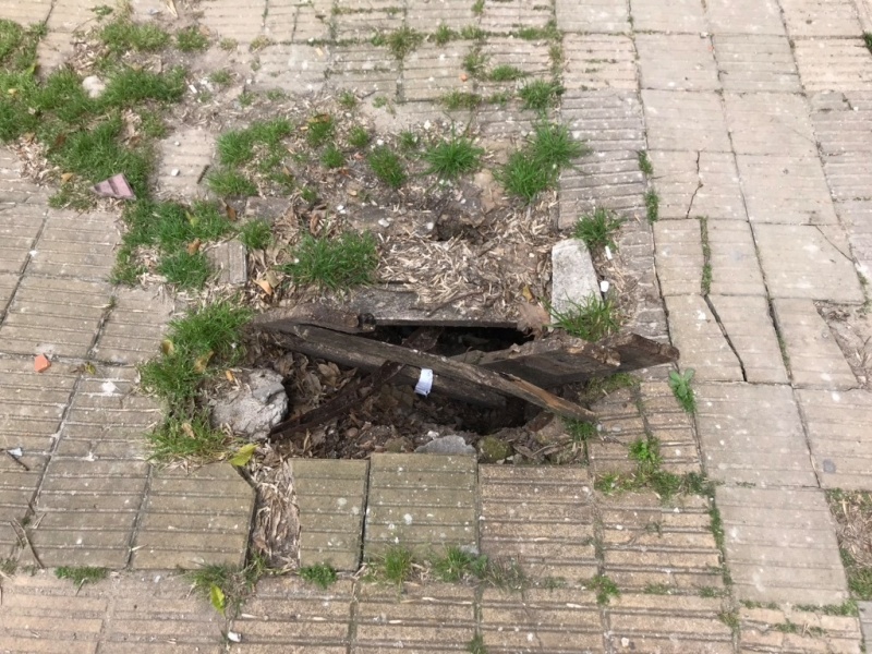 Los mismos frentistas fueron quienes pusieron unas maderas dentro del pozo para prevenir a los peatones y lograr que no se caigan dentro de él. Un vecino aseguró que si no se tapaba, “tranquilamente alguien que pasaba por ahí se podía romper una pierna”. A pesar de los múltiples reclamos, todavía la vereda sigue sin arreglarse.