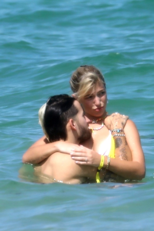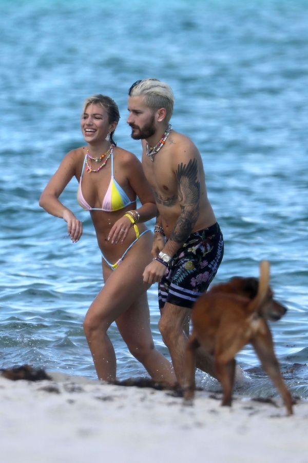 Ambos fueron retratados en el mar, jugando y sonriendo muy enamorados. Además Stefi aprovechó para lucir una bikini multicolor de su propia marca, y un collar de piedritas coloridas, el cual también lo llevaba puesto el hijo de Ricardo Montaner, como siempre muy compinche con ella.