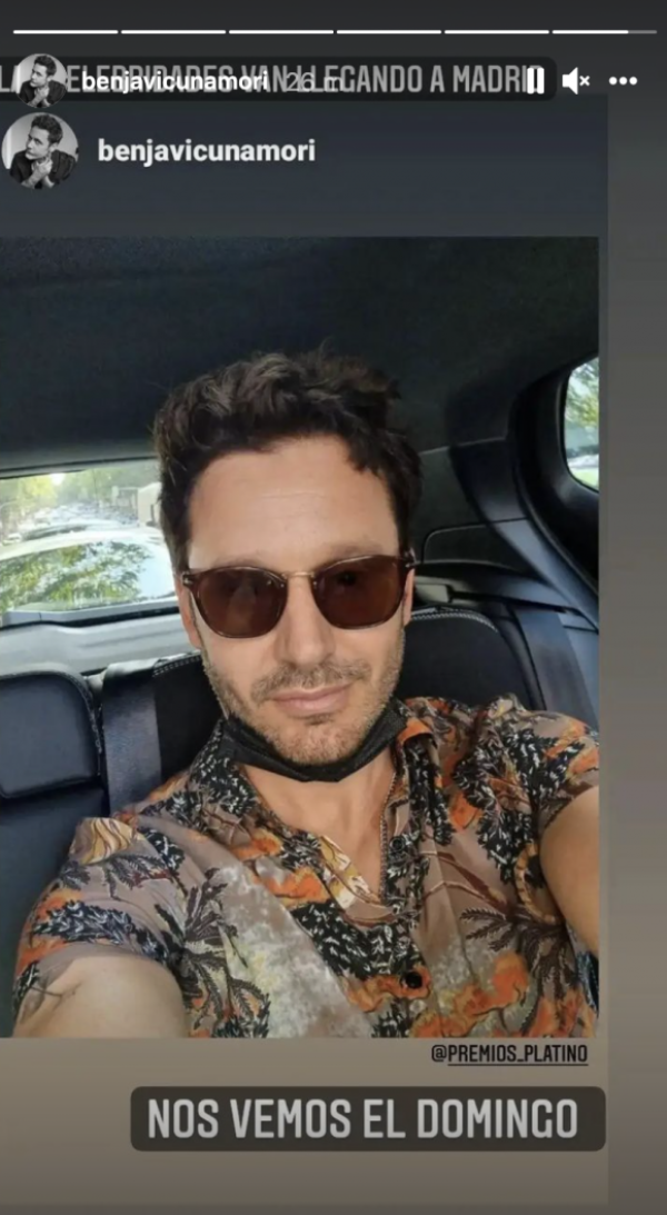 Por su parte, Benjamín Vicuña subió una foto a sus redes sociales donde se lo ve muy sonriente, anunciando su llegada a Madrid. “Nos vemos el domingo”, escribió anunciando que estará participando de los Premios Platino en la misma ciudad.