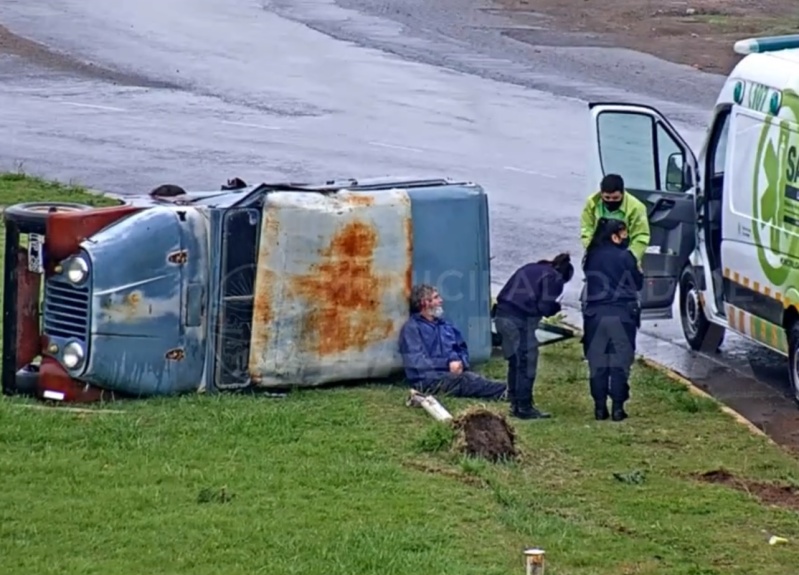 Un hombre que circulaba por Ruta 36 y 520 en una camioneta, mordió el cordón y volcó sobre la rotonda. Debió ser trasladado por el SAME al centro médico más cercano.