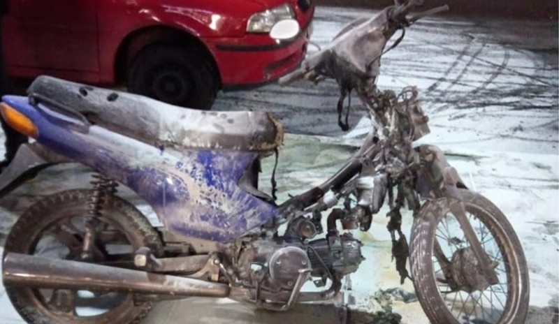 Según informaron fuentes policiales, luego del intento fallido de delinquir, con un repartidor que se defendió a las piñas, el ladrón se fue indignado por ver frustrado su ataque. En ese momento salió corriendo y prendió fuego una moto.