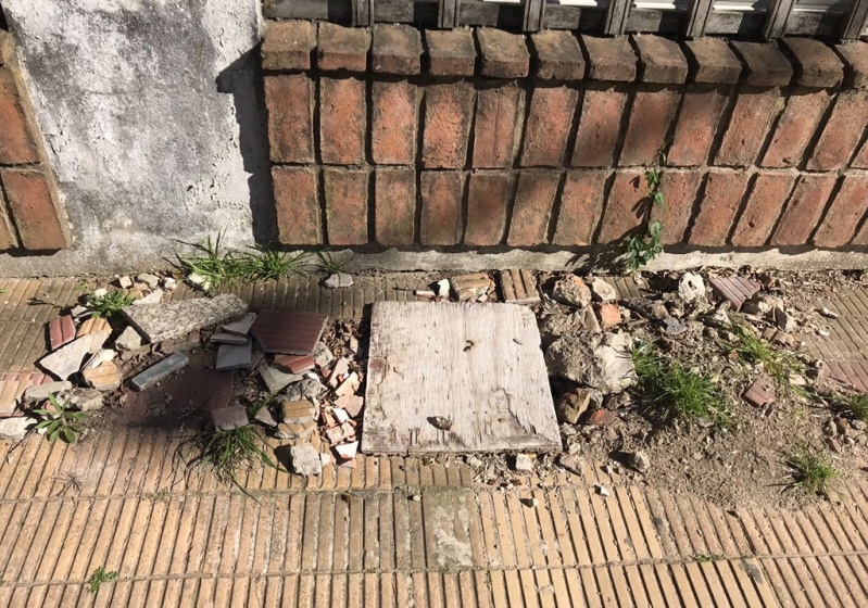 Por eso mismo, decidieron tapar el cráter con una pedazo de madera y así no dejarlo expuesto. Además, aseguran que ese pozo está “hace muchísimo tiempo, pero nunca fueron a arreglarlo” y que “con el tiempo se fueron rompiendo las baldosas aledañas”.