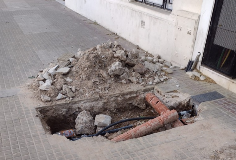 A metros de Plaza Moreno, los vecinos aseguran que rompieron la vereda con el fin de arreglar unos caños, pero “dejaron toda la vereda destrozada y nunca volvieron a arreglarla”. El hecho se dio en avenida 13, entre 49 y 50, donde una gran pila de escombros, escolta un pozo de grandes dimensiones.