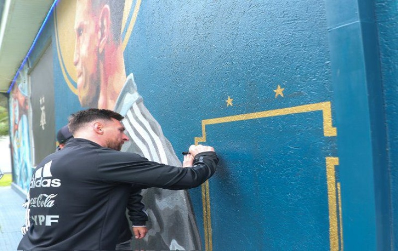 "Los Campeones de América inauguraron hoy, junto al Presidente Claudio Tapia, un hermoso mural alusivo a la obtención de la Copa América en Brasil. Dale campeeeeón, dale Campeeeón!", escribieron desde la cuenta de Twitter de la Selección Argentina, @Argentina.