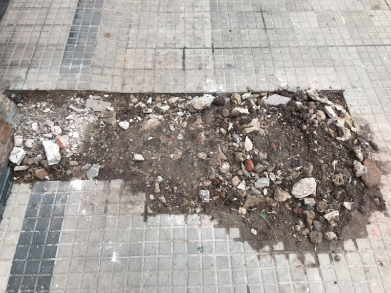 Una vecina de Plaza Paso relató el calvario que sufre con su vereda rota. Según relató, operarios levantaron las baldosas de la puerta de su casa para reparar unos caños, pero estos nunca volvieron a arreglarla. “Vinieron, el caño se arregló, pero la vereda quedó totalmente destruida”, relató.