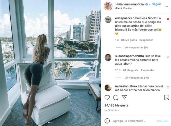 Al parecer, los usuarios observaron que tenía los pies sucios y comentaron: “Preciosa... Lo único me da cosita que pongas los pies sucios arriba del sillón blanco... Es más fuerte que yo", otro seguidor escribió: "Que se lave las patas, mucha pinturita pero agua jabón...", mientras que otra comentó: "Ella fachera con el pie negro arriba del sillón blanco".