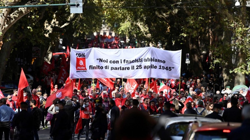 La manifestación de este sábado fue convocada después de que el pasado 9 de octubre, durante las protestas contra el pase sanitario obligatorio, los miembros de la organización neofascista Forza Nuova devastaran la sede de la CGIL y trataran de apoderarse del Palacio Chigi, la residencia del Gobierno italiano.