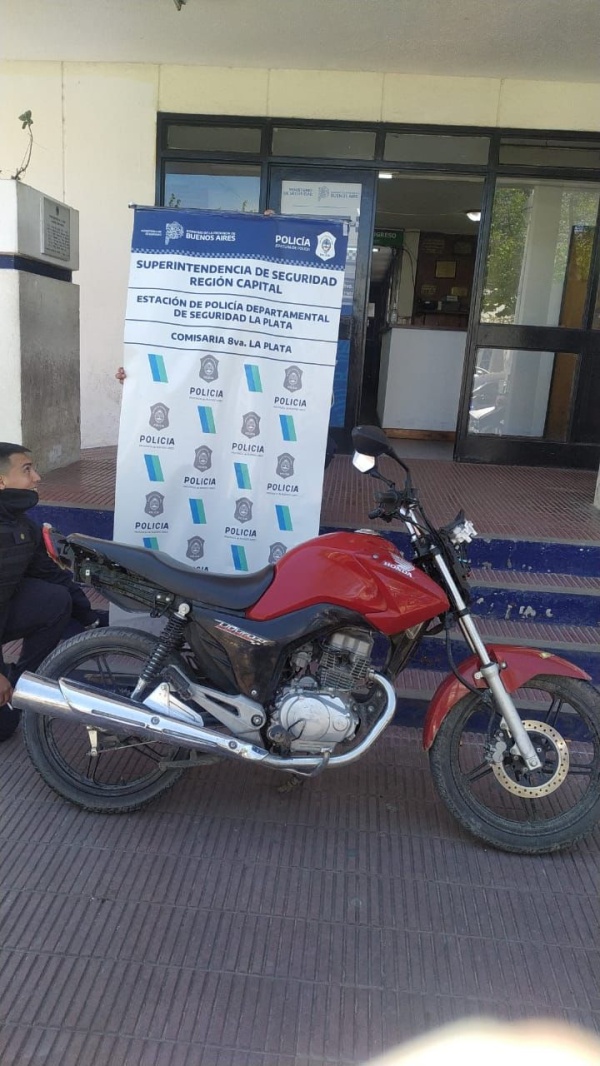 Tras realizar una requisa por el lugar, los oficiales encontraron en calle 80 y esquina 21 una pistola calibre 22 que los maleantes descartaron en un tacho de basura (posible arma con la que cometieron el robo). Además, al identificar la motocicleta arrojada al asfalto, marca Honda modelo CG Titán 150 color roja y negra, las autoridades constataron que tenía pedido de secuestro activo desde el 27 de septiembre pasado, luego de haber sido robada en la región.