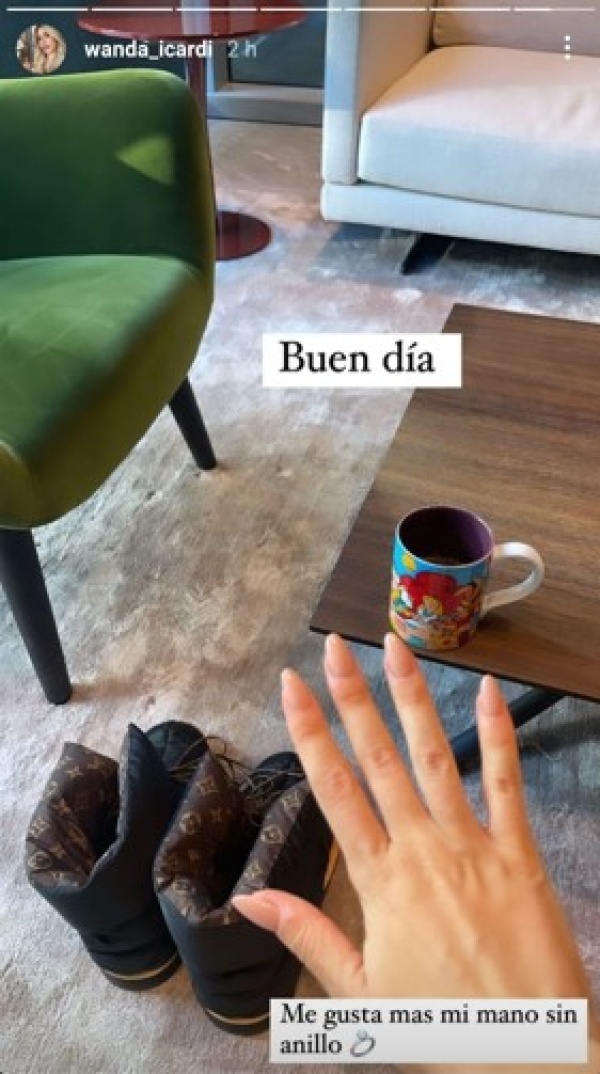 Muy empoderada, la empresaria subió esta mañana una foto a sus historias donde muestra su mano mientras toma un té. Un detalle particular, es que la rubia luce orgullosa su mano sin el anillo de compromiso y escribió, súper filosa: “Me gusta más mi mano sin anillo”.