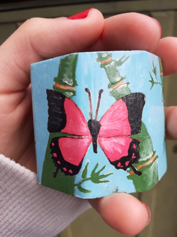 Yamila se cansó de que le paguen poca plata en el trabajo que se encontraba y decidió emprender. Hace 4 meses realiza macetas, en la que en cada una de ellas le hace diferentes tipos de diseños y dibujos. Todo sea por ayudar al sueldo que aporta su marido y sustentar con otra entrada de dinero a su familia.