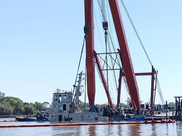 Una grúa se trasladará a la zona del hundimiento mediante la asistencia del Remolcador “VB Recoleta” (2750HP), zarpando desde el Puerto Boca del Riachuelo.