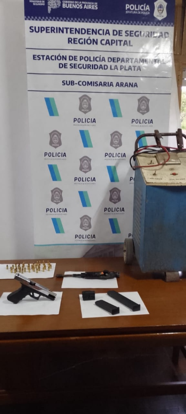 En el domicilio se encontraban los dos galgos y la cortadora de Pasto denunciada. A su vez, hallaron una pistola automática marca Glock con 39 proyectiles de 9mm, un calo de rifle de aire comprimido, una mira tipo laser, y un cargador con municiones.