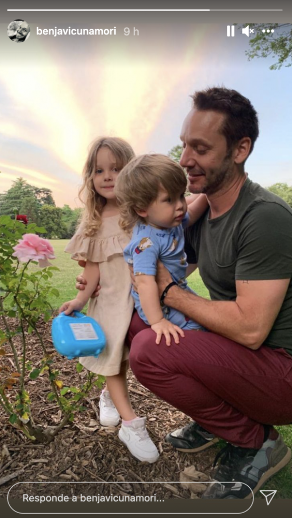 De esta manera, Benjamín Vicuña subió una foto donde se lo ve muy feliz en un parque junto a sus dos pequeños, Magnolia y Amancio. El actor chileno abraza al más chico, mientras que Magnolia sonríe a la cámara, a la vez que su papa la toma por la espalda.