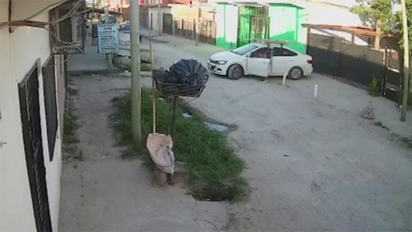 Según registró una cámara de seguridad de la zona, el hombre y sus acompañantes llegaron a subir a un Volkswagen Virtus color blanco y, cuando estaban por irse, fueron abordados por dos delincuentes armados.