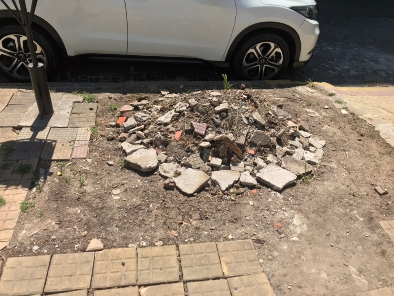 “La gente creyó que eran escombros y empezaron a tirarlos encima”, confirmó. “Desde que sacaron el árbol, quedó un gran pozo que nadie arregló. Cuando solucioné el problema con mis medios, ahora tengo una montaña de cascotes en la puerta de mi casa”, agregó muy enojado. Tras varios reclamos y pedidos, aun no tiene respuestas.