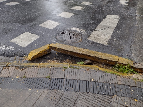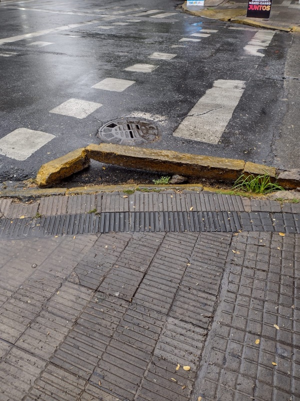 La situación ocurre en la esquina de 13 y 45 donde el cordón de la vereda se rompió, impidiendo el cruce de los peatones.