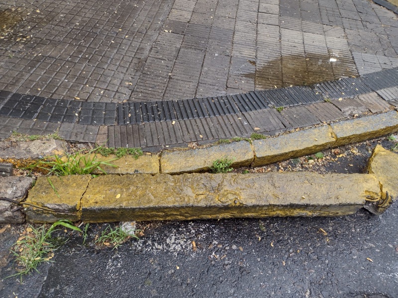La situación ocurre en la esquina de 13 y 45 donde el cordón de la vereda se rompió, impidiendo el cruce de los peatones.