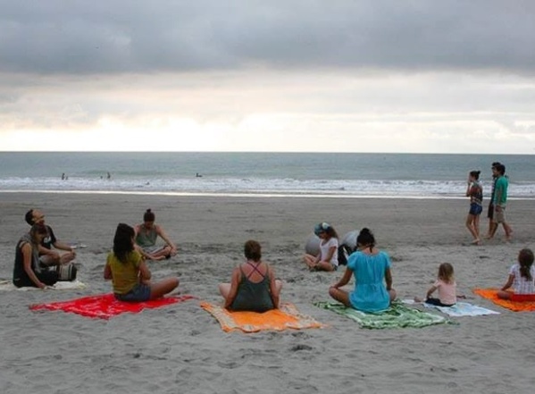 Allí siguió dando clases de yoga. En Ecuador, por ejemplo, dio clases en plena playa. Impresionante.