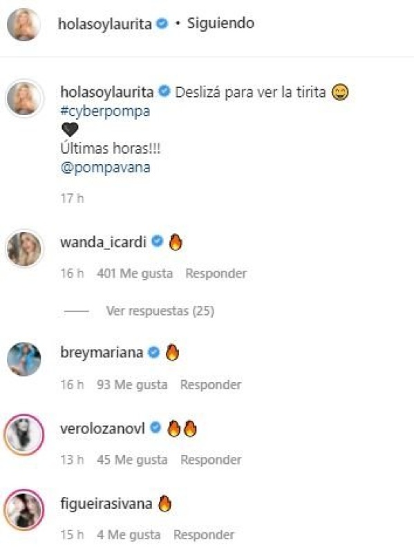 “Deslizá para ver la tirita”, escribió divertida, y en seguida le llovieron los “likes” y los comentarios buena onda de muchas colegas, como Wanda Nara, Vero Lozano y Mariana Brey. Pero además se ganó el halago de muchos seguidores.