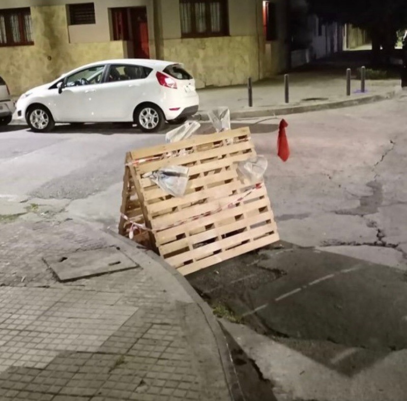 Un vecino declaró que “una señora cayó dentro de él y se lastimó” y que también un auto “se encajó” cuando quiso girar. Para prevenir nuevos accidentes, los mismos frentistas pusieron unos pallets con cintas de peligro, para alertar del enorme pozo.