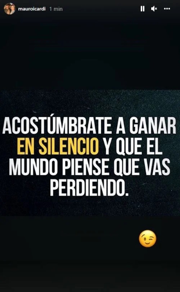 En el posteo se ve al futbolista abrazado a la mamá de sus hijas Francesca e Isabella –a quién no dudó en arrobar- al aire libre mientras sonríen para la cámara, que acompañó con un emoji de un fueguito y un corazón rojo. Por otro lado, en Instagram Stories agregó otro texto que dará que hablar: "Acostumbrate a ganar en silencio y que el mundo piense que vas perdiendo".