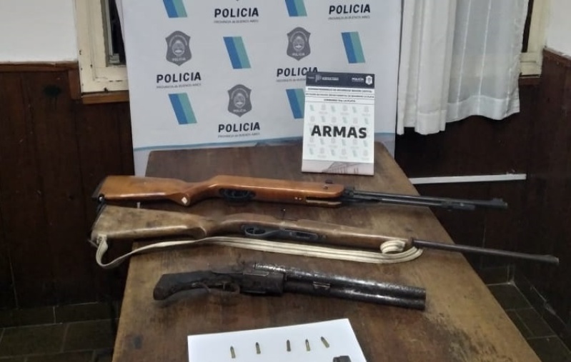 En ese marco, los efectivos policiales secuestraron, en la casa del imputado un rifle calibre 22 largo, un rifle de aire comprimido, un pistón calibre 12 y un revólver calibre 22, además de municiones.