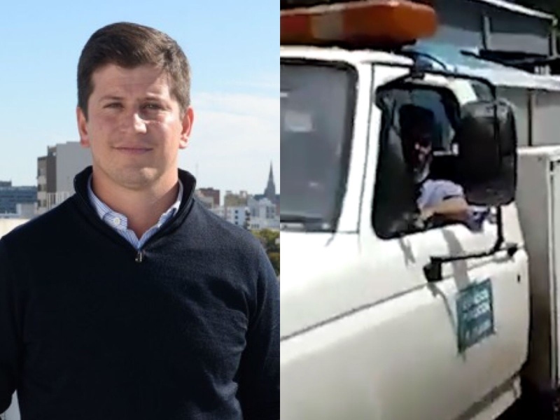 Las imágenes muestran un camión de basura que se lleva los pasacalles dejando colgados los de Santilli/ Manes/ Garro, y cuando la persona que filmaba le preguntó por los motivos de esta conducta a empleado municipal que manejaba una de las camionetas municipales, no obtuvo ninguna respuesta lógica.