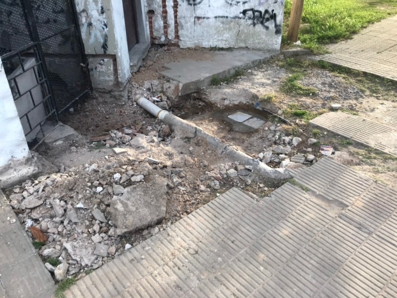 El hecho se da a pocos metros de la Plaza Güemes, en la puerta lateral del colegio “Nuestra Señora de Lourdes” de La Plata. Allí una importante obra en la vereda, dejó expuestos varios caños, baldosas rotas y profundos pozos.
