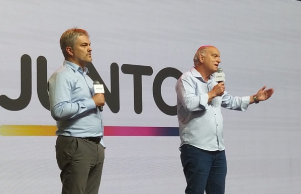 Los jefes de campaña de Juntos, Néstor Grindetti y Manuel Terrades, hablaron desde el bunker de Gonnet.